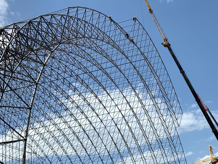 (2)网架加工前应对现场尺寸进行复测,确认无误后方可进行加工、安装;网架制作、运输、安装应遵守《空间网格结构技术规程》JGJ7-2010、《钢网架龙岩螺栓球节点》JG/T 10-2009、《钢网架龙岩螺栓球节点用高强度螺栓》 GB/T 16939-2016、《龙岩钢结构龙岩工程龙岩施工规范》 GB50755-2012、《龙岩钢结构龙岩工程施工质量验收标准》 GB50205-2020。